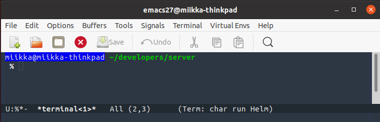 Viime blogisarjan osasta onkin vierähtänyt jo hetki. Tuolloin työstimme Emacsistamme Python-IDE:n, tutustuimme Flycheck-syntaksikääntäjän antamiin varoituksiin ja hioimme editorin käytettävyysasetuksia. Jatkamme myöhemmissä blogin osissa Python-konfiguraatioidemme hiomista. Tämänkertaisessa tekstissä opettelemme sen sijaan käyttämään terminaalia editorin sisältä. Näin Emacsista toiseen ikkunaan vaihtamiselle tulee yhä harvemmin tarvetta.